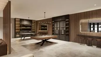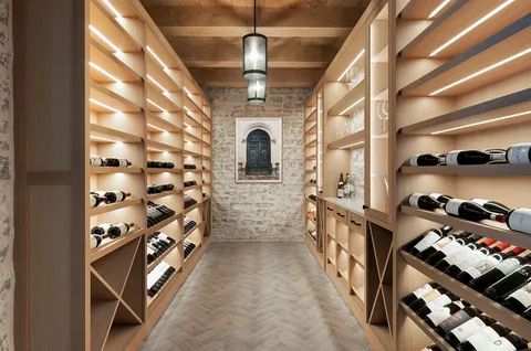 와인셀러나 우드 중심 공간처럼, 밀도감 있는 재료를 활용해 아늑하고 고급스러운 분위기를 만든다.